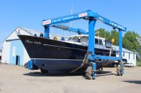 Met onze 8 ton Linde heftruck en 40 ton Roodberg botenlift liften wij moeiteloos uw boot in en uit het water.